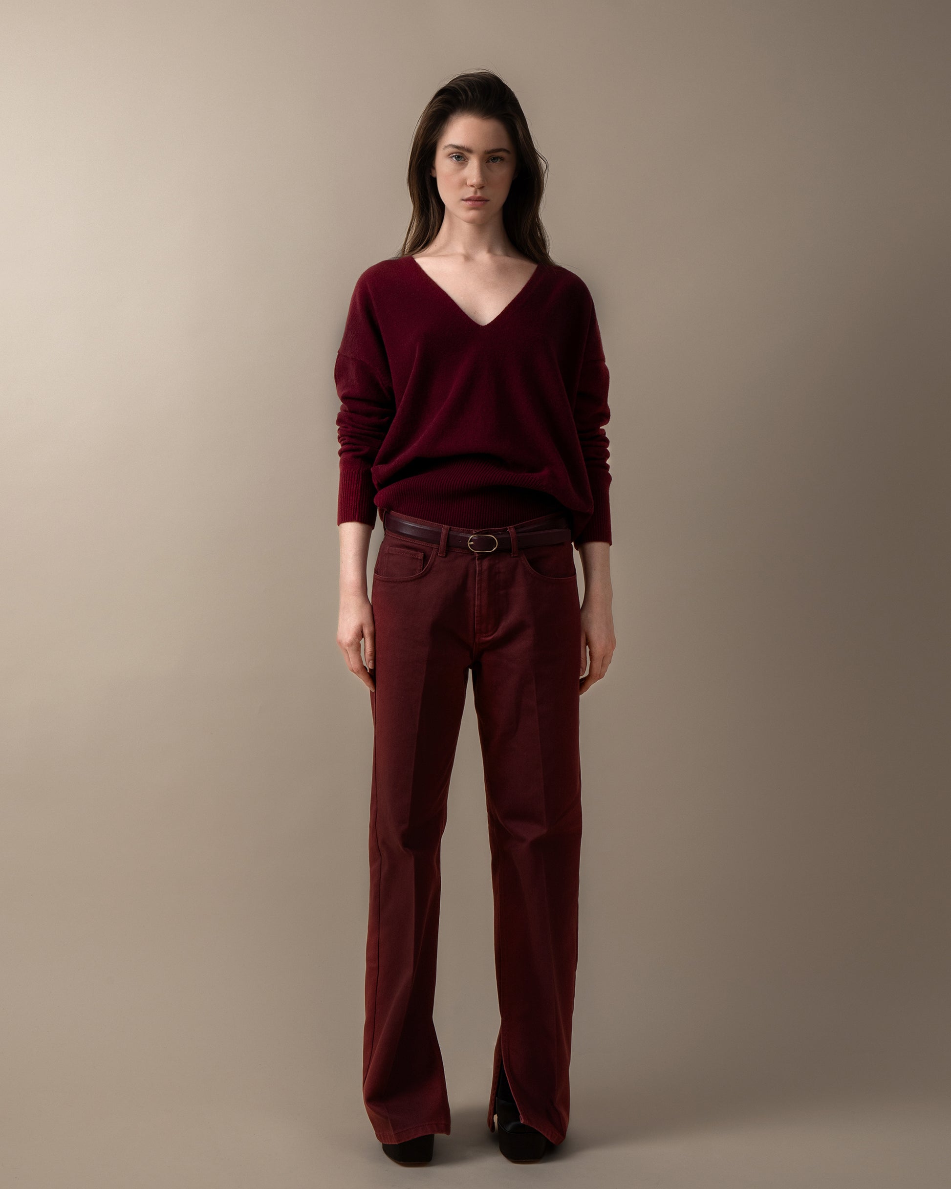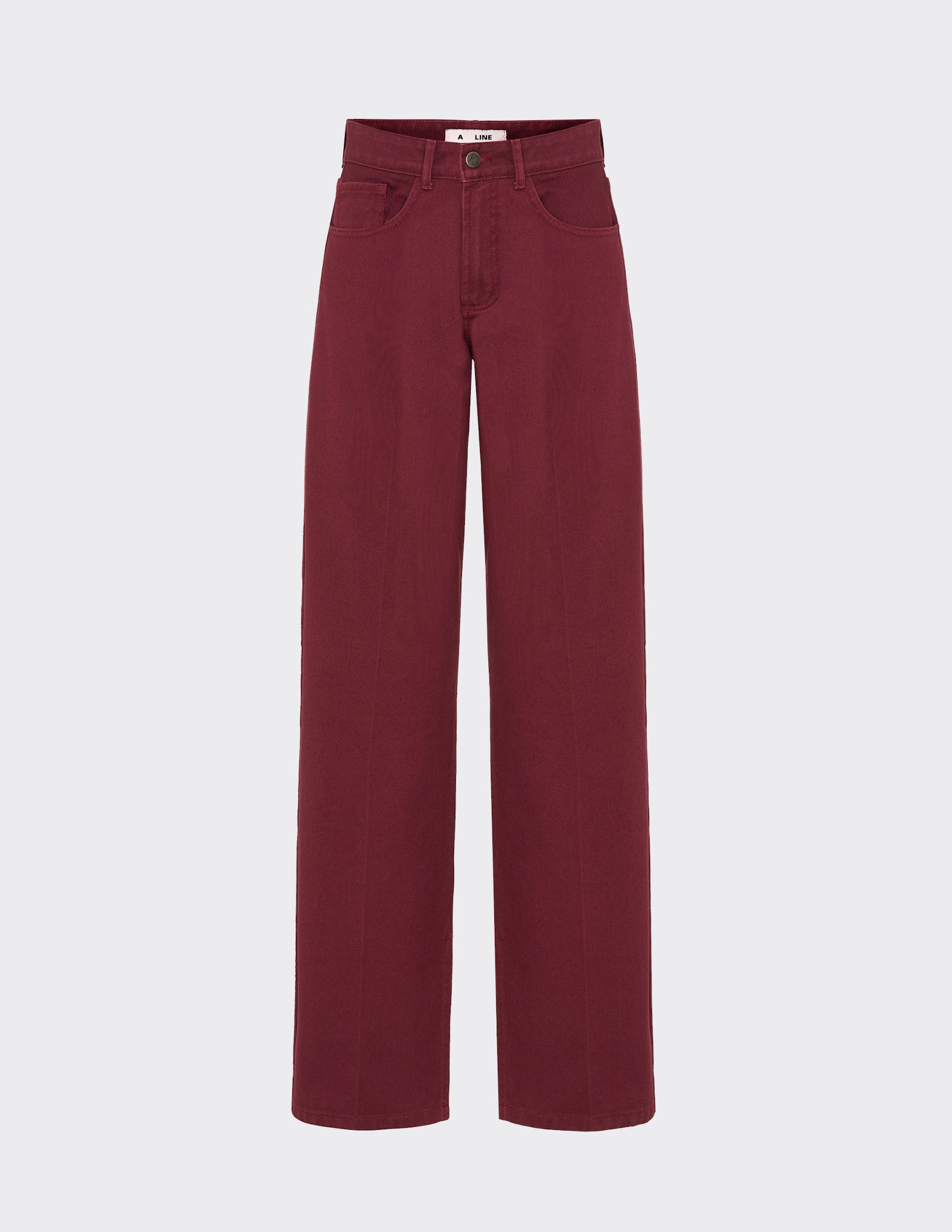 Boyish jeans with dropped waist. Creased leg, 5 pockets. Leather labelling. Back pockets with double stitching A-design. Belt loops with A-design detail on the back. Bottom hem with side vent on the interior of the leg.