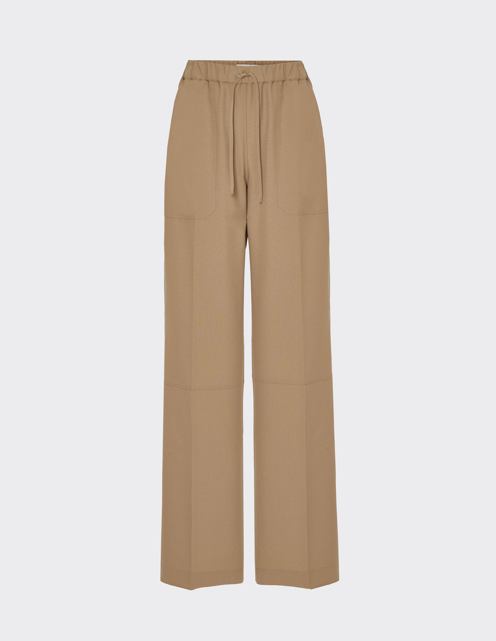 Regular fit trousers with elastic waistband and cord-detail. Creased leg with front patch pockets and two rear patch pocket with A -detailing in double stitching. Knee-cut detail. Belt loops on the back with A-design.