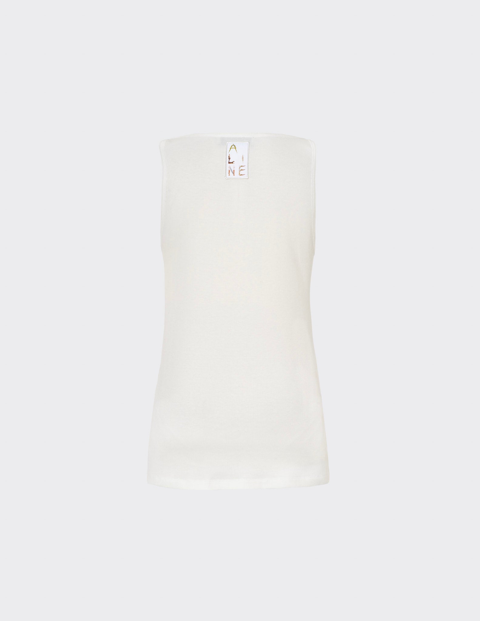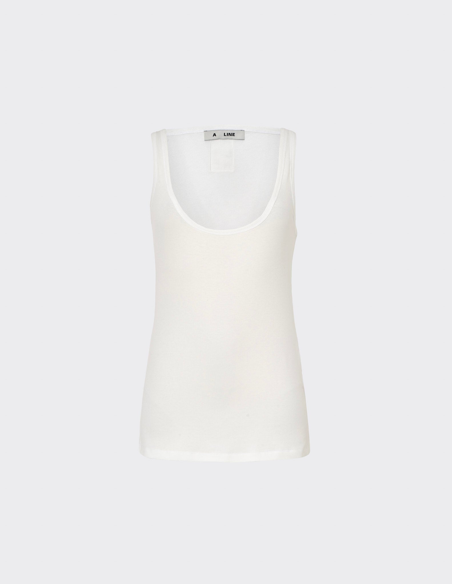Rib-jersey tank top with round neckline. Form-fitting silhouette, ultra flattering and lightweight.