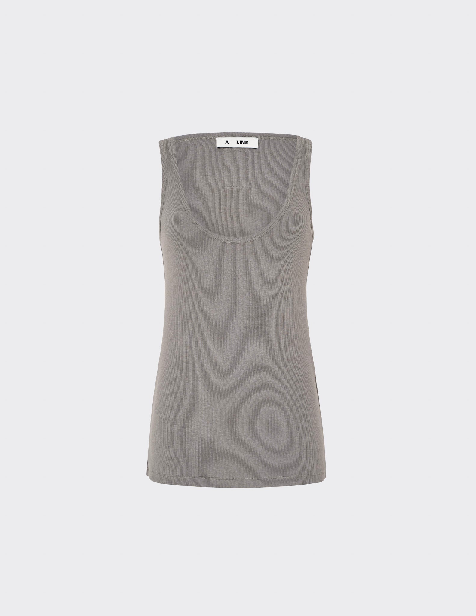 Rib-jersey tank top with round neckline. Form-fitting silhouette, ultra flattering and lightweight.