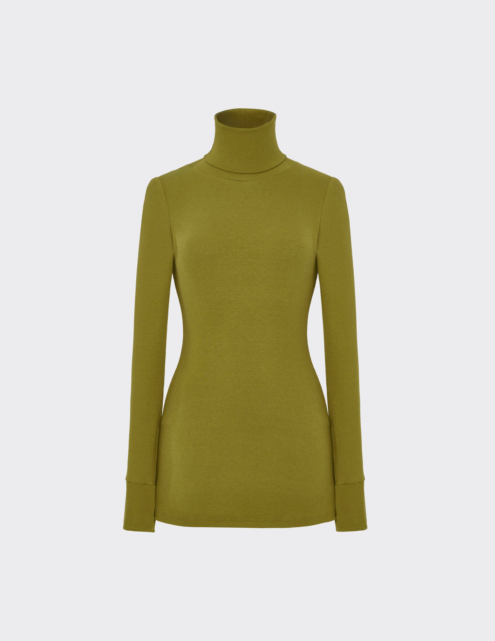 Slip on turtleneck long-sleeve rib-jersey jumper. Form-fitting silhouette, ultra flattering and lightweight.