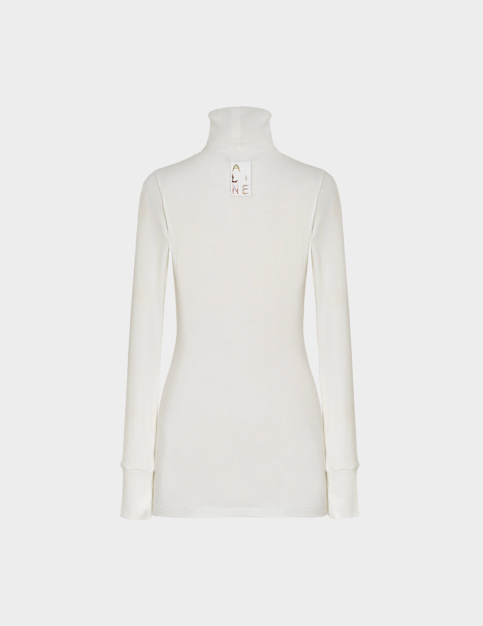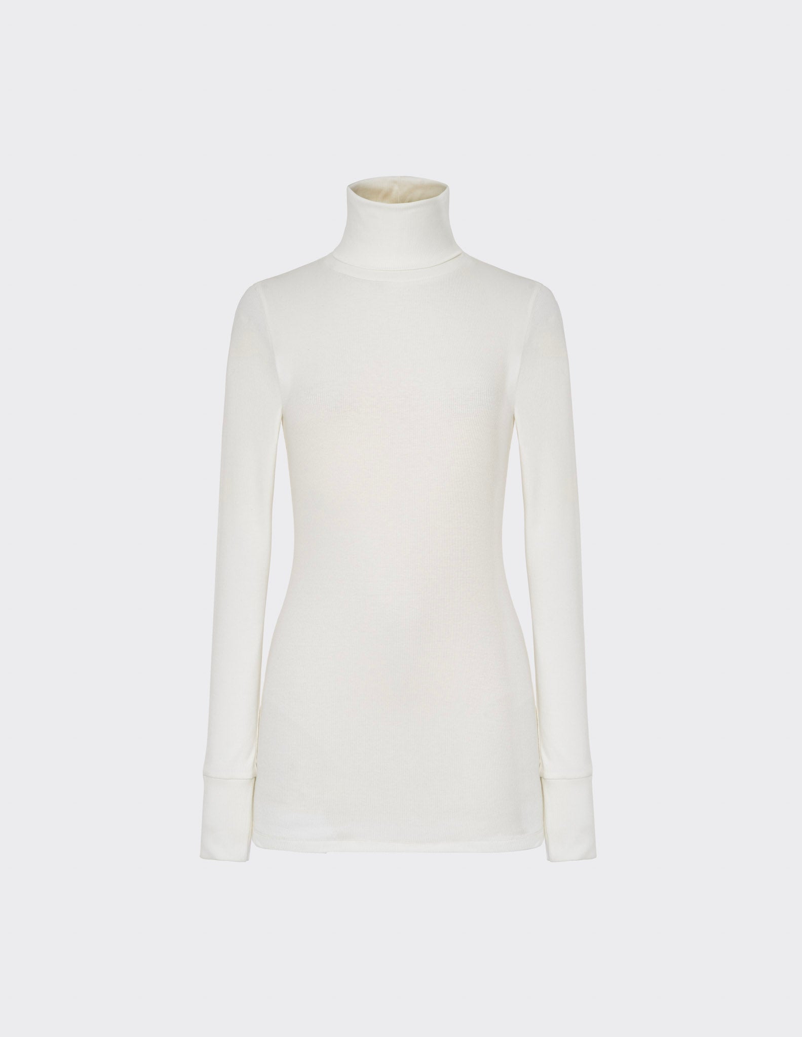 Slip on turtleneck long-sleeve rib-jersey jumper. Form-fitting silhouette, ultra flattering and lightweight.